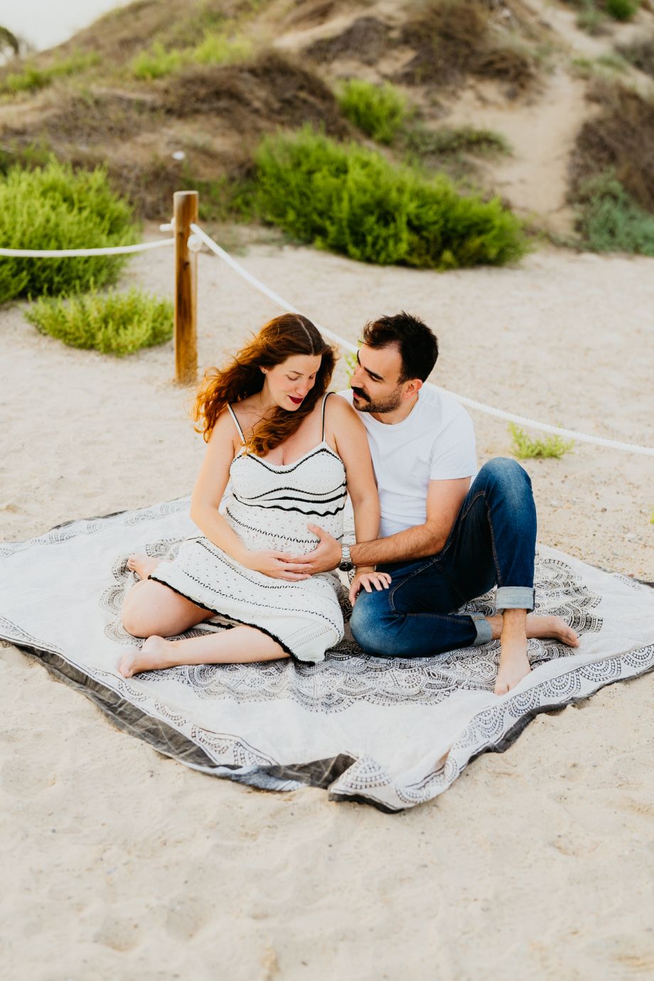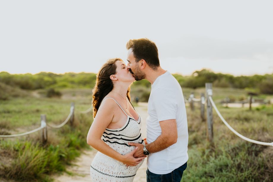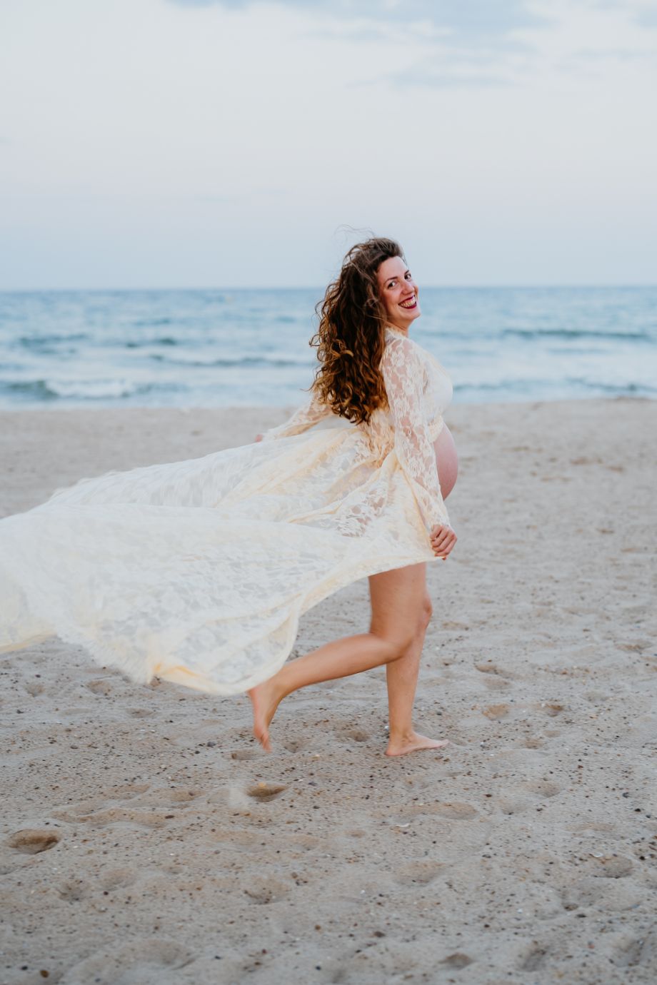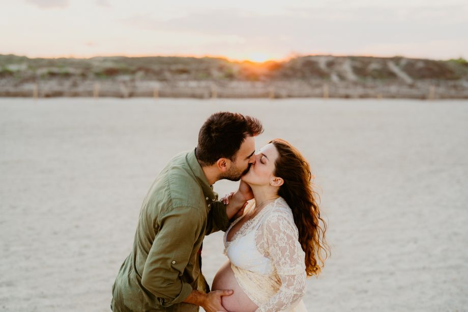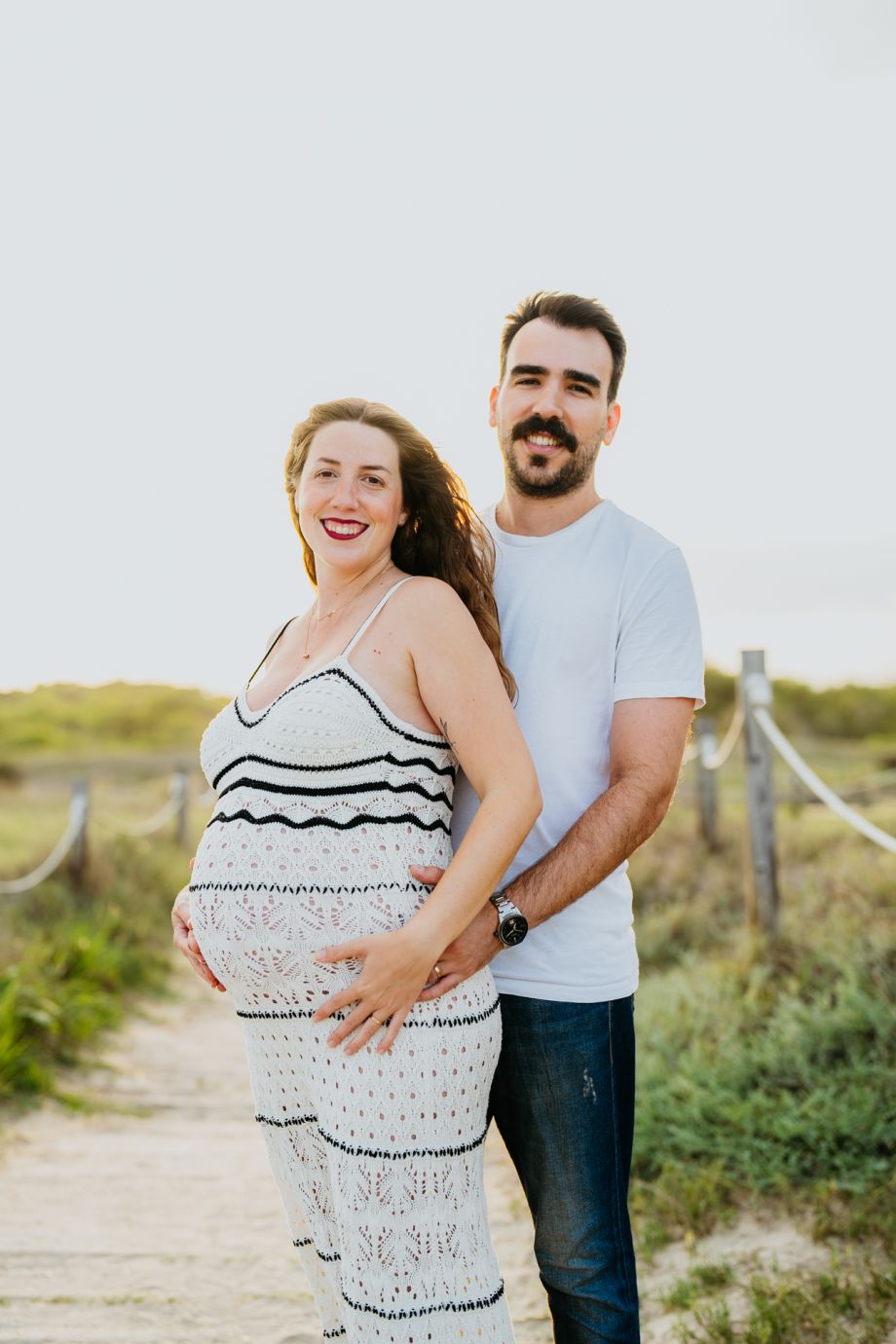 Sesión de fotos premamá en la playa del Saler de Valencia.