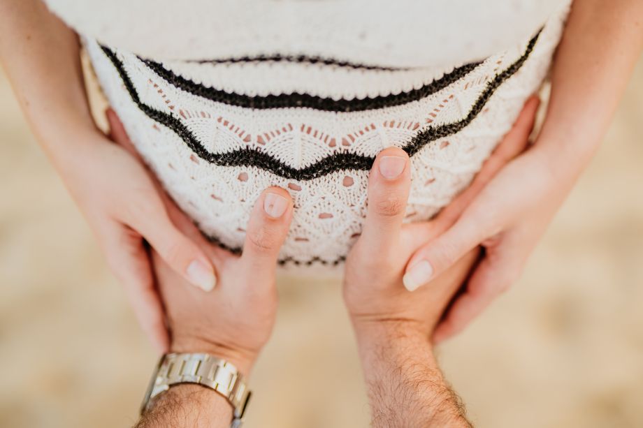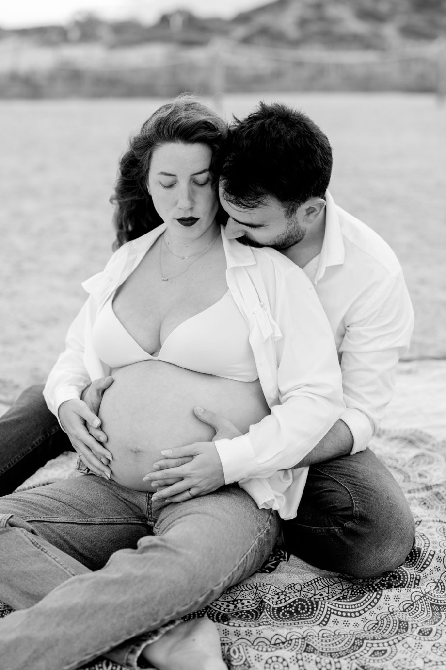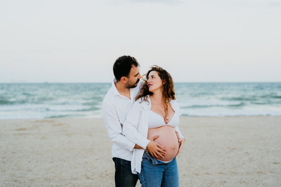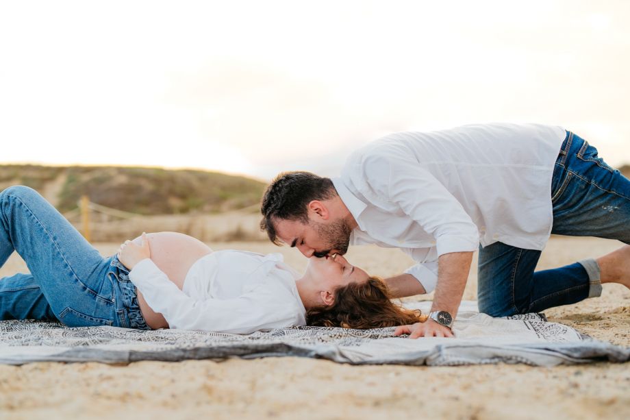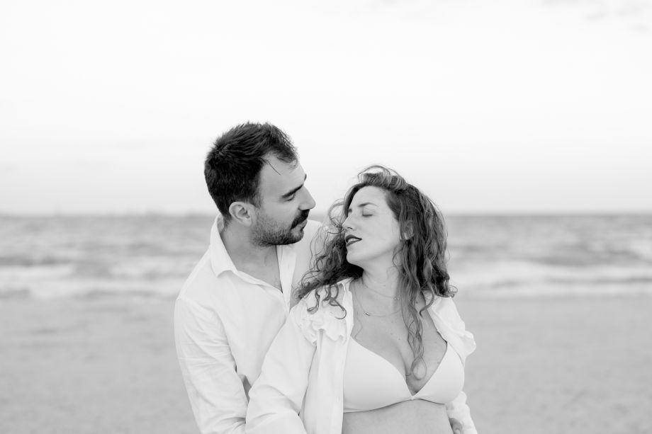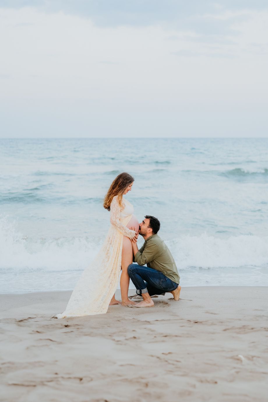Sesión de fotos premamá en la playa del Saler de Valencia.