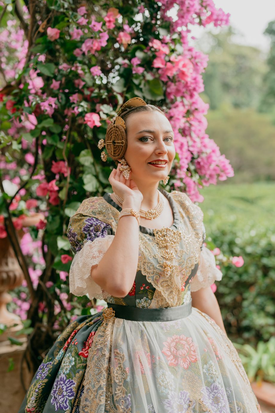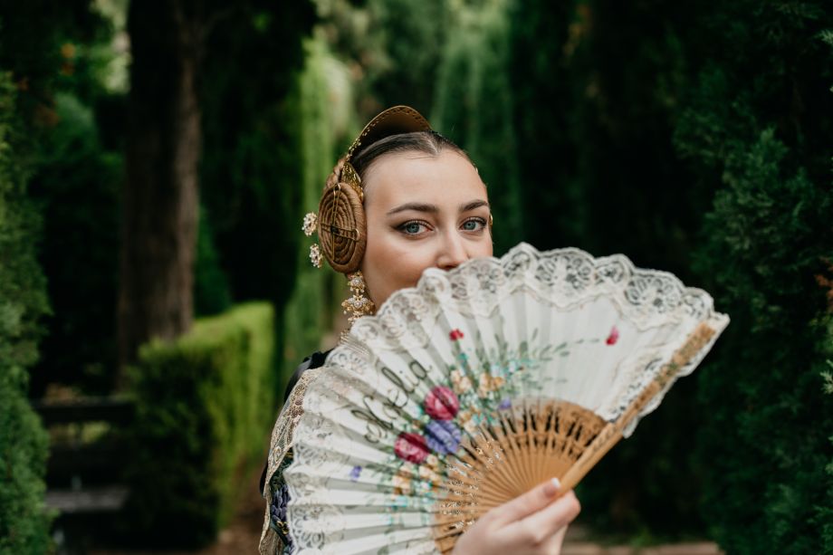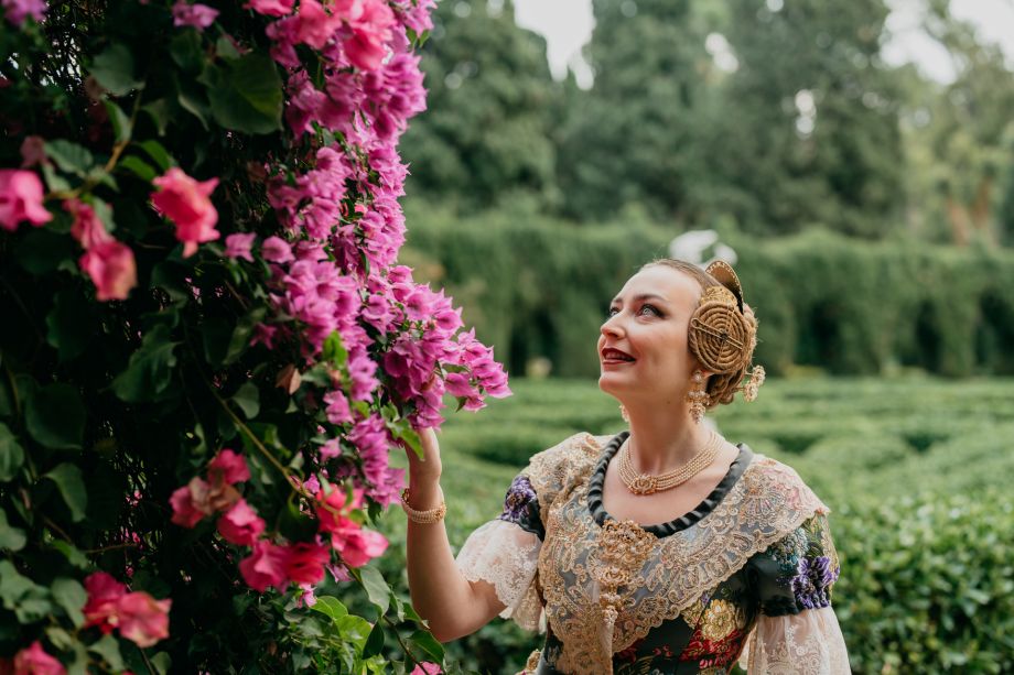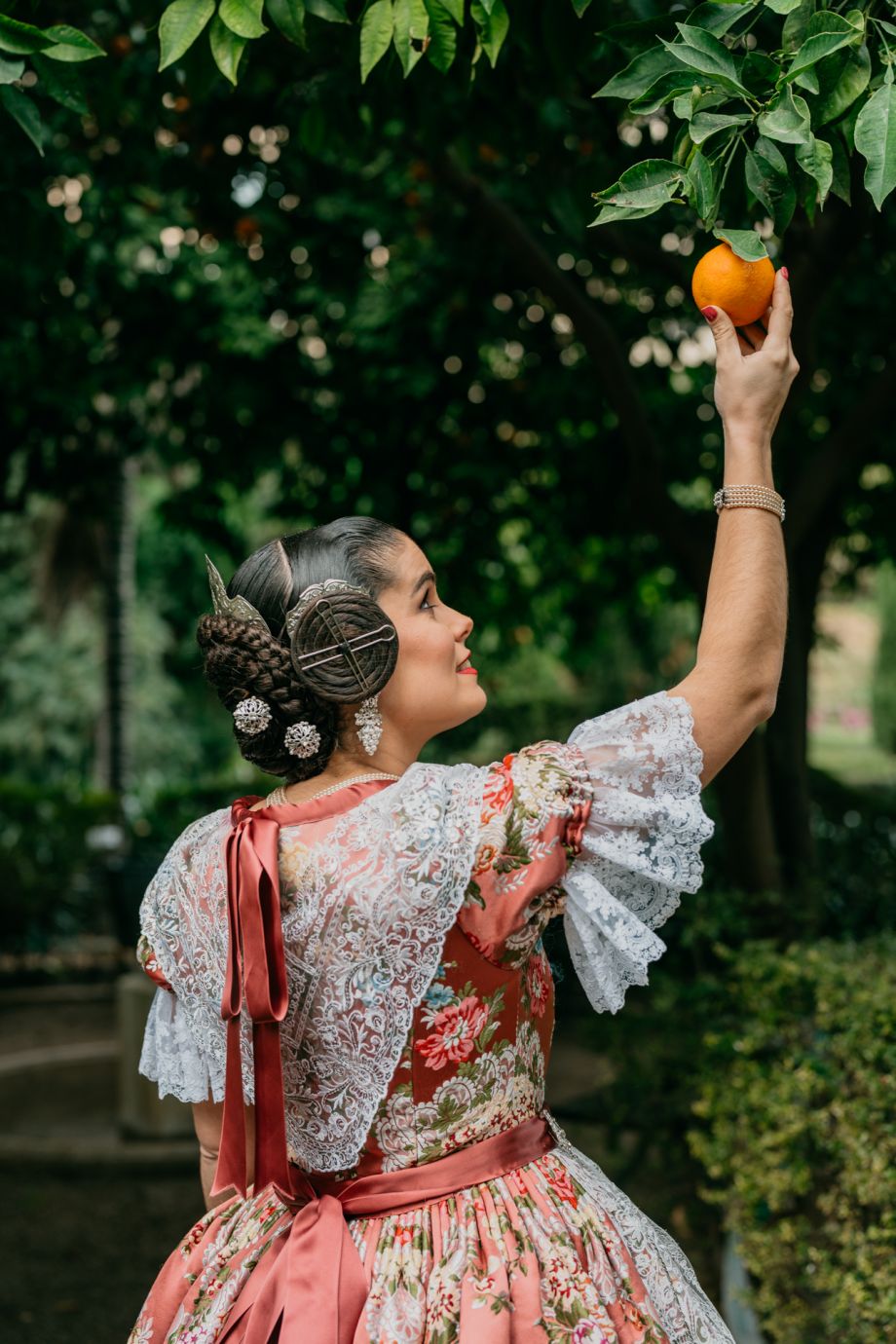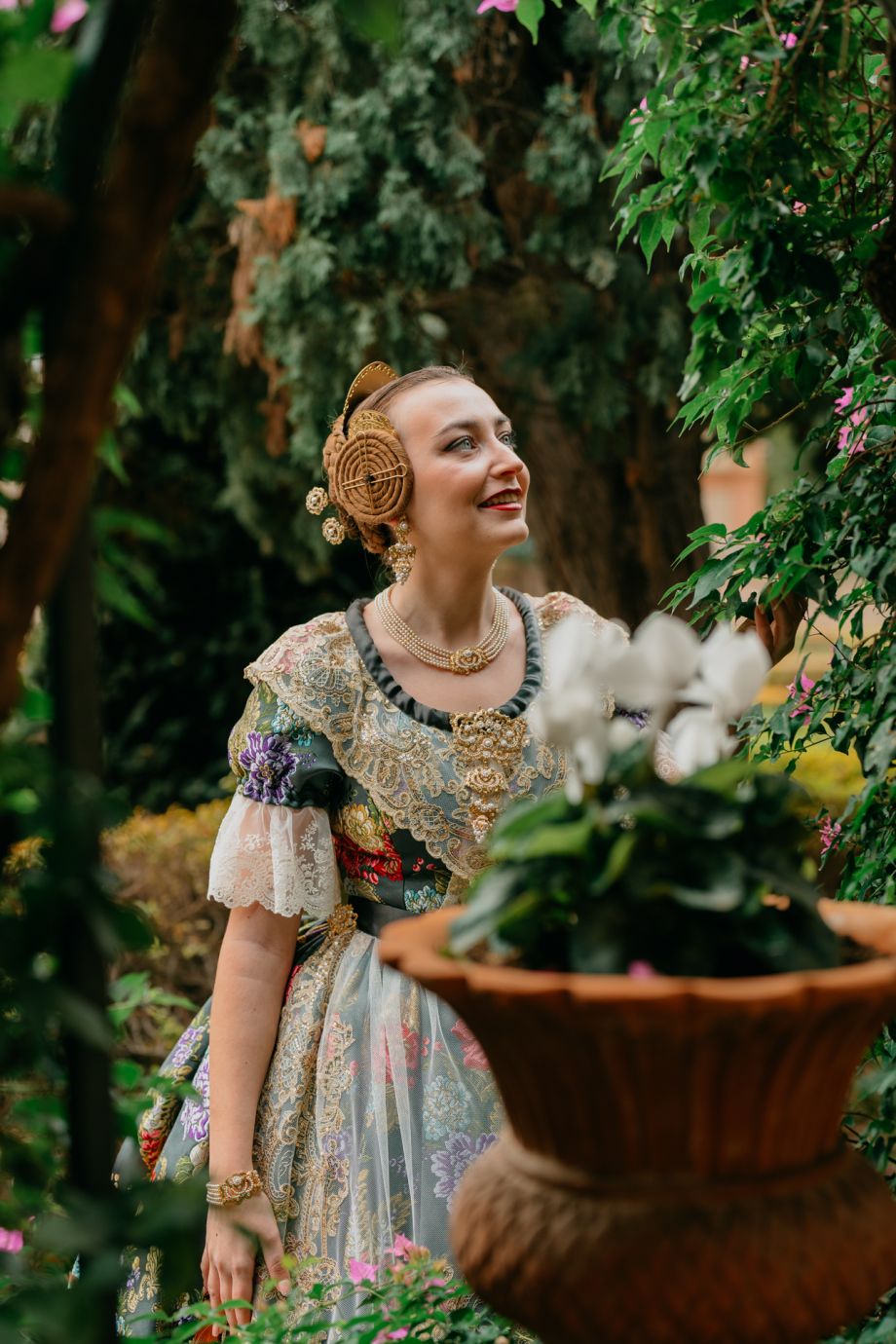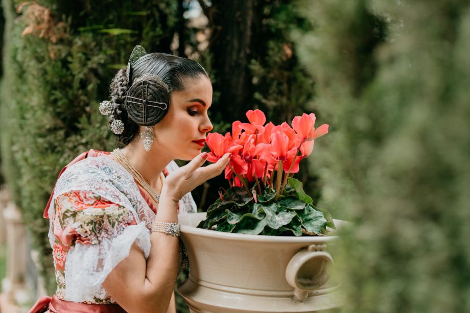 Sesión de fotos de fallera en los Jardines de Monforte de Valencia.