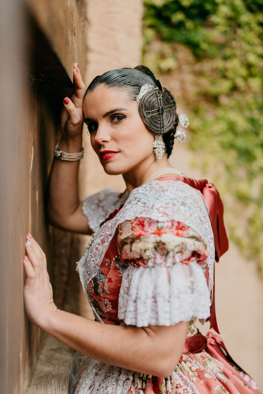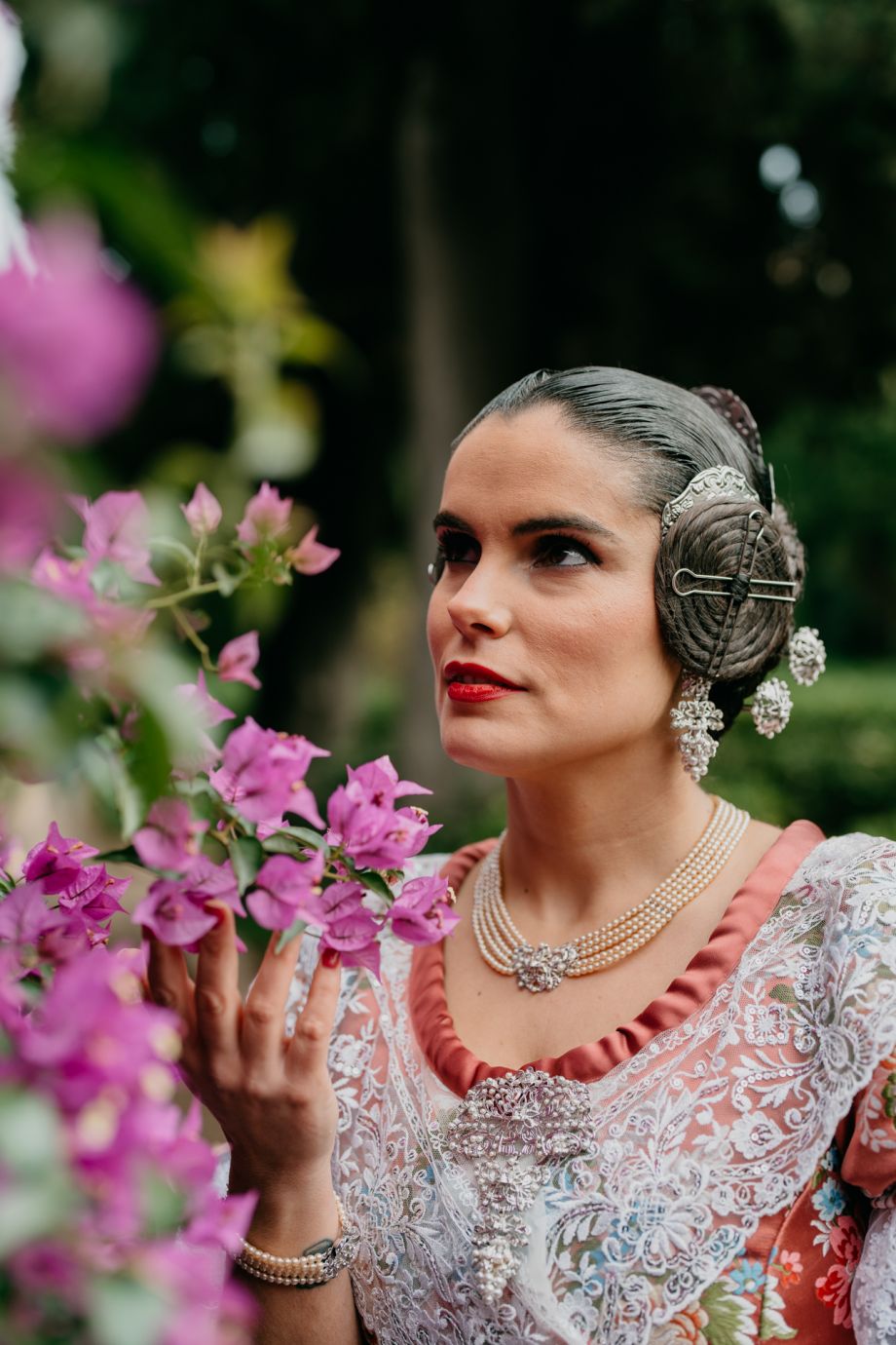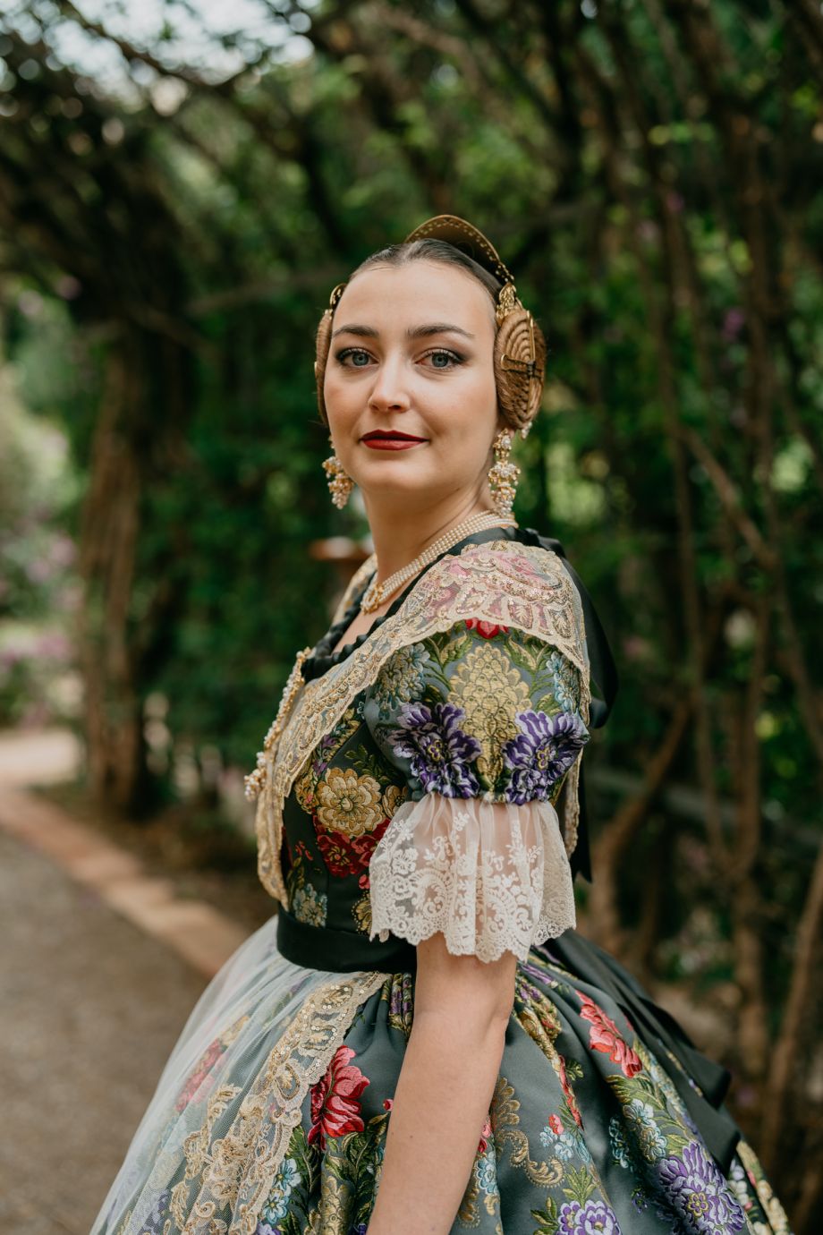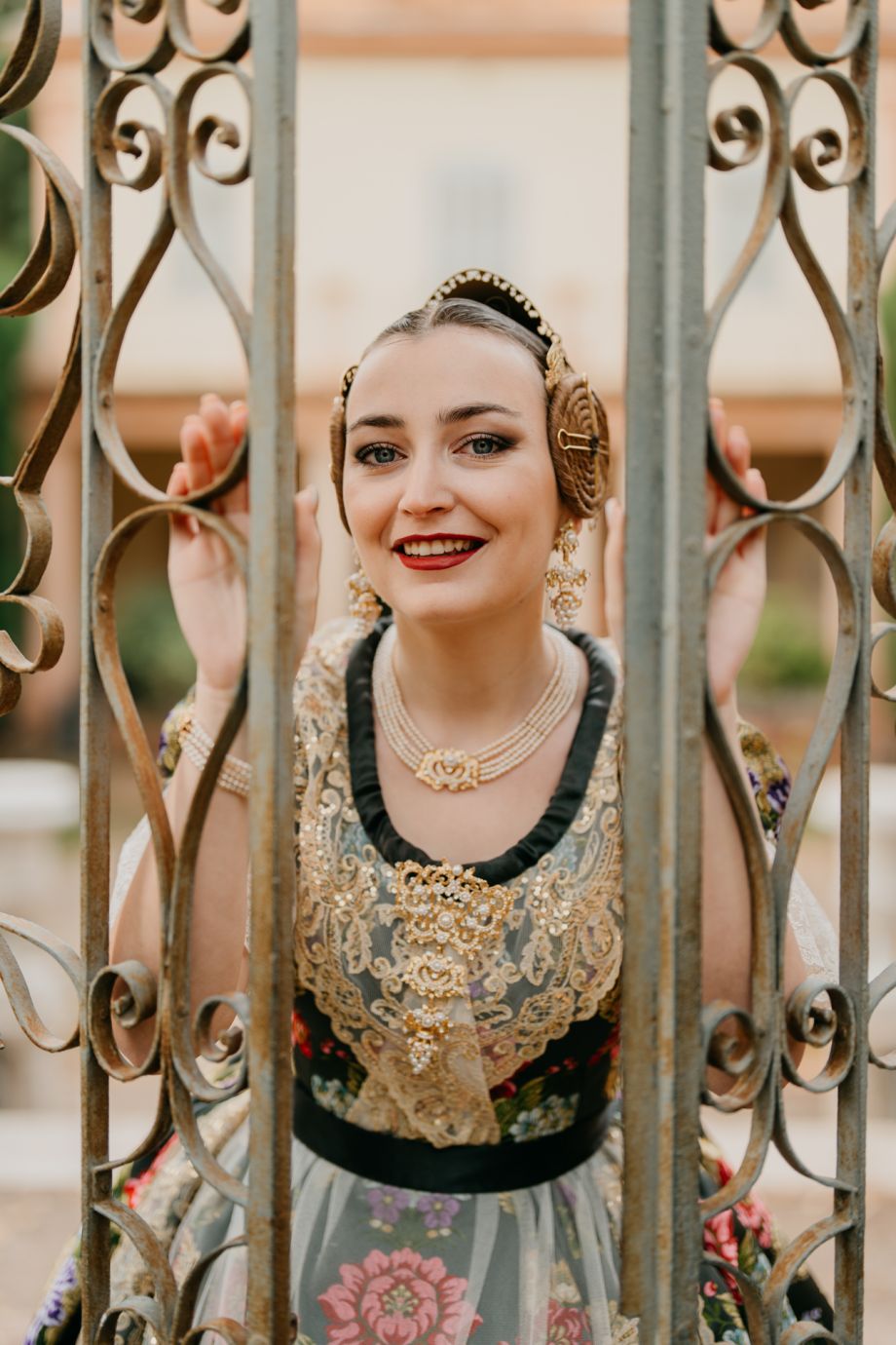 Sesión de fotos de fallera en los Jardines de Monforte de Valencia.