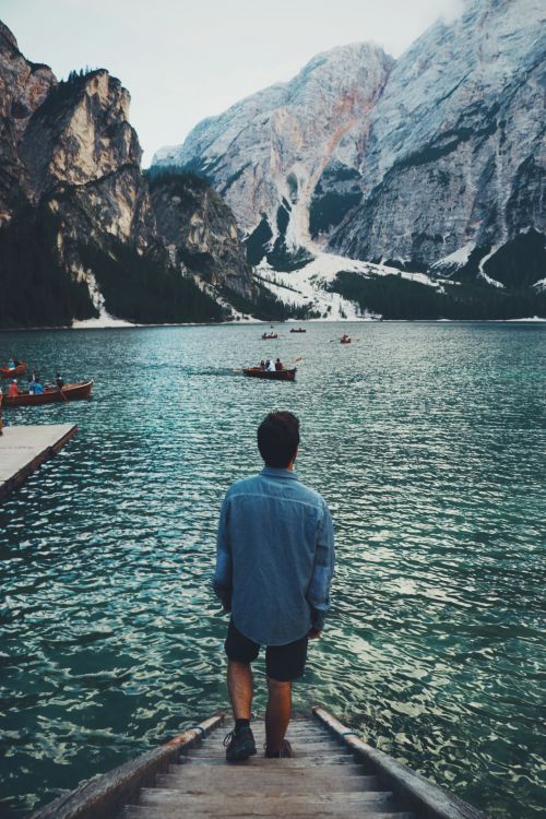 Lago di Braies is undoubtedly the most emblematic photo of the Dolomites, a famous jetty on the shores of the lake, surrounded by high mountains and some charismatic wooden boats, a candy in the mouth for instagramers. The good thing about being Spanish for places of mass tourism is that we arrived at the site when everyone was leaving. After an hour in line and 28€ we managed to rent the famous rowboat. After half an hour of rowing, The boats began to withdraw and we took the opportunity to have fun for a while taking photos with a country shirt that forces Pablo to wear for the photo.