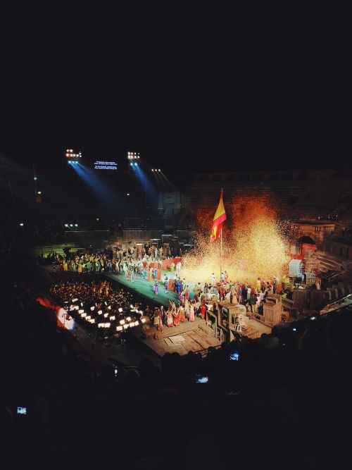 We continued on our way to Milan, we were running on time and posters of Verona began to appear on the highway. It was in another direction but neither of us had been, the idea of diverting us began to take off and suddenly Carlos's light bulb lit up. It turns out that Verona is famous for an opera festival, which takes place every year, in which you can enjoy opera in the open air no more and no less than in the Roman amphitheater of the city, and yes, that night there was a concert. . If you have ever been to the opera you will know that it is a rather expensive show and that it also governs a dress protocol. We were all made up in camping gear, so our chances of being admitted were clearly in doubt. We went to the box office and that night we ended up seeing the Carmen Opera for 23€, dressed in mountain clothes.