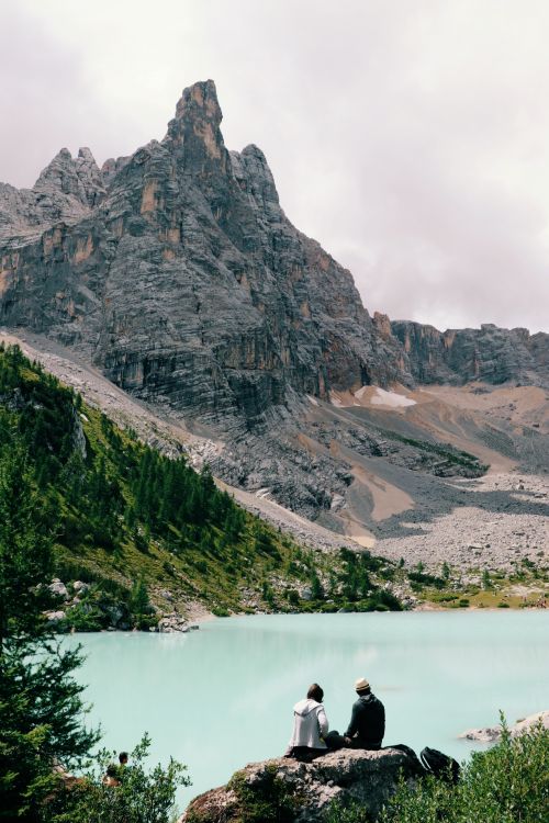 We decided to start strong with two emblematic locations, we prepared ourselves for the warm-up route, with a total of 13 km to go up and down to Lake Sorapis, a lake of blue waters, with a dream color, that no matter how many photos you see you need to see it with your own eyes to believe it's real. The very pleasant route was traveled mostly between pine and fir trees, and in turn, between dozens of hikers who had proposed to do the same route, a must on the trip to the Dolomites. We practically did not manage to be alone the whole way and little by little it became the challenge of the trip, to be able to hear the silence on the mountain, something unlikely for me to date, an unknown sensation for me, mountain and crowd.
