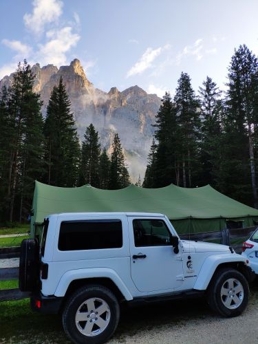 It had been a long time since I woke up in a place like this. I walked out of the tent to the car, the trunk had become our travel wardrobe, and I got ready to shower. Camping Sass Dlacia (13.80€/person/day) had been our choice as a base camp. The highest-altitude campsite in the Dolomites, a full-equipped campsite, with a supermarket, restaurant, pizzeria, sauna, toilets and hot showers, rather focused on caravanning, and too prepared if yours is the wild style.