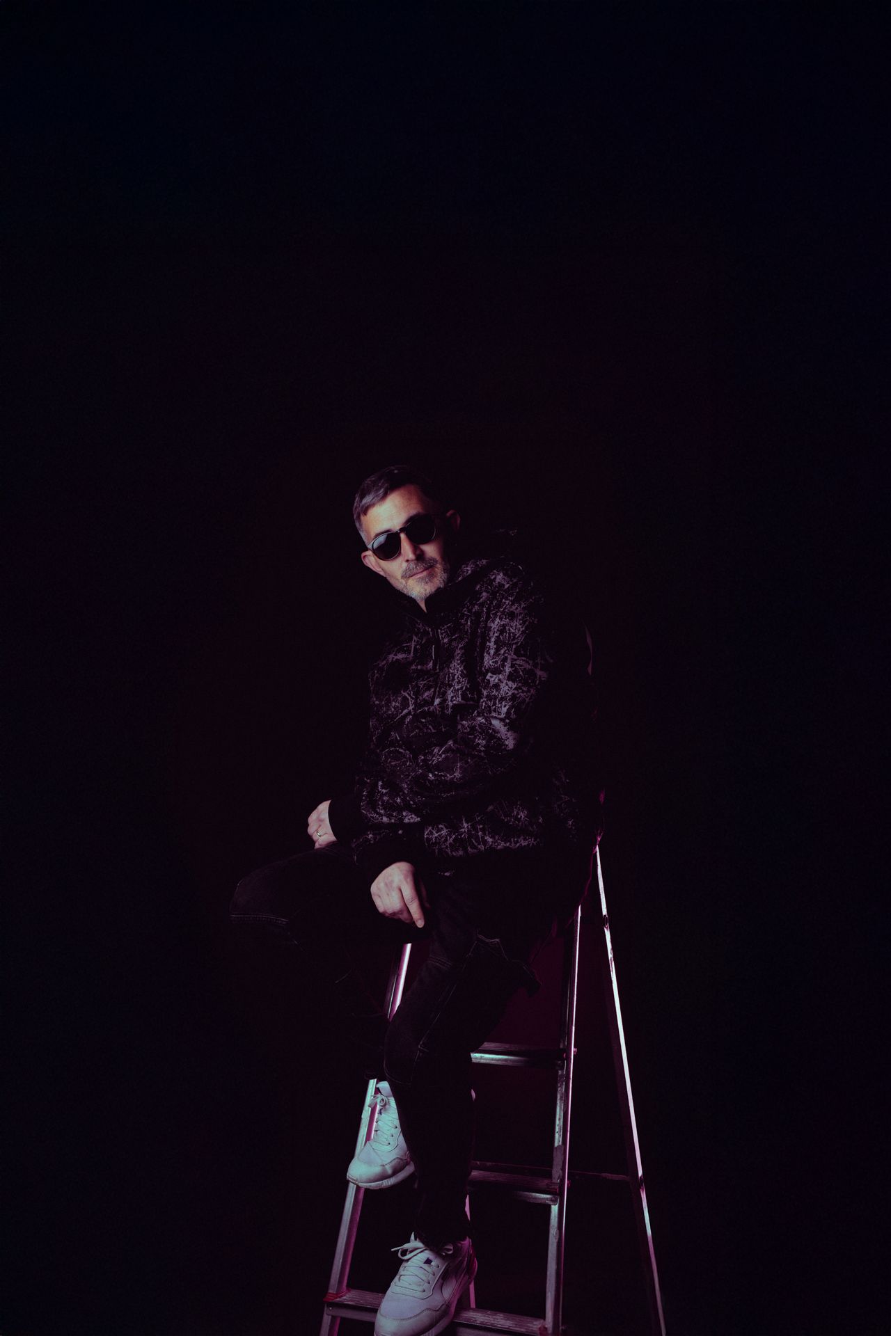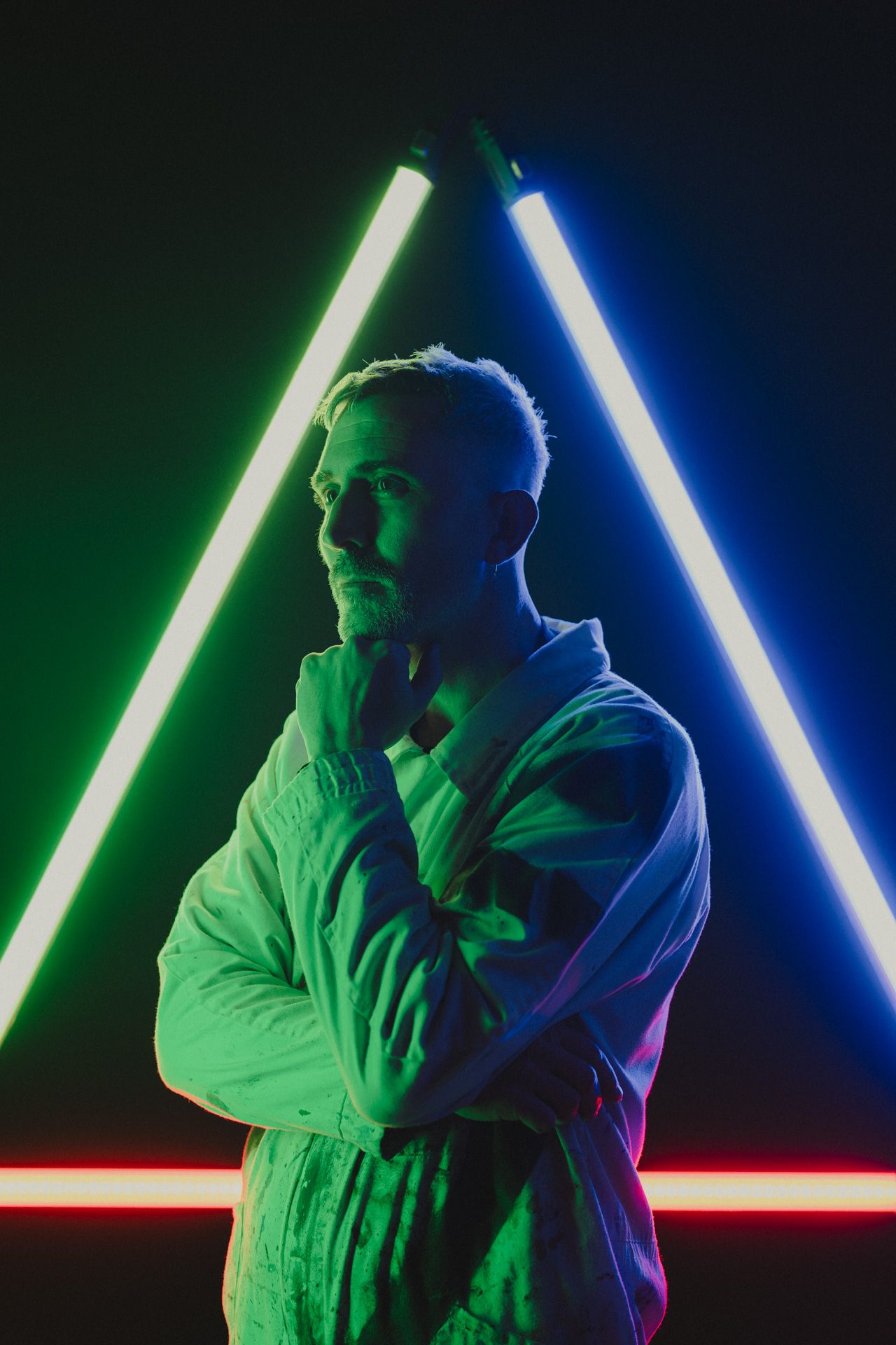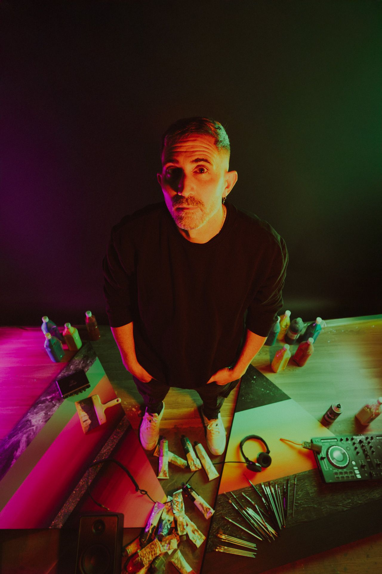 Studio photo shoot for @VicentePanach 2025 DJ Press Kit. Vicente is visual artist and techno music producer based in Valencia. In the pictures we merge his two worlds as a painter and DJ.